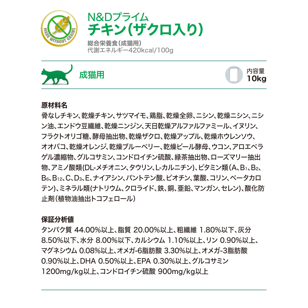 ファルミナ N&D プライム チキン ザクロ入り 成猫用 10kg
