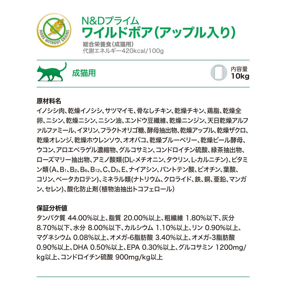 ファルミナ N&D プライム ワイルドボア アップル入り 成猫用 10kg