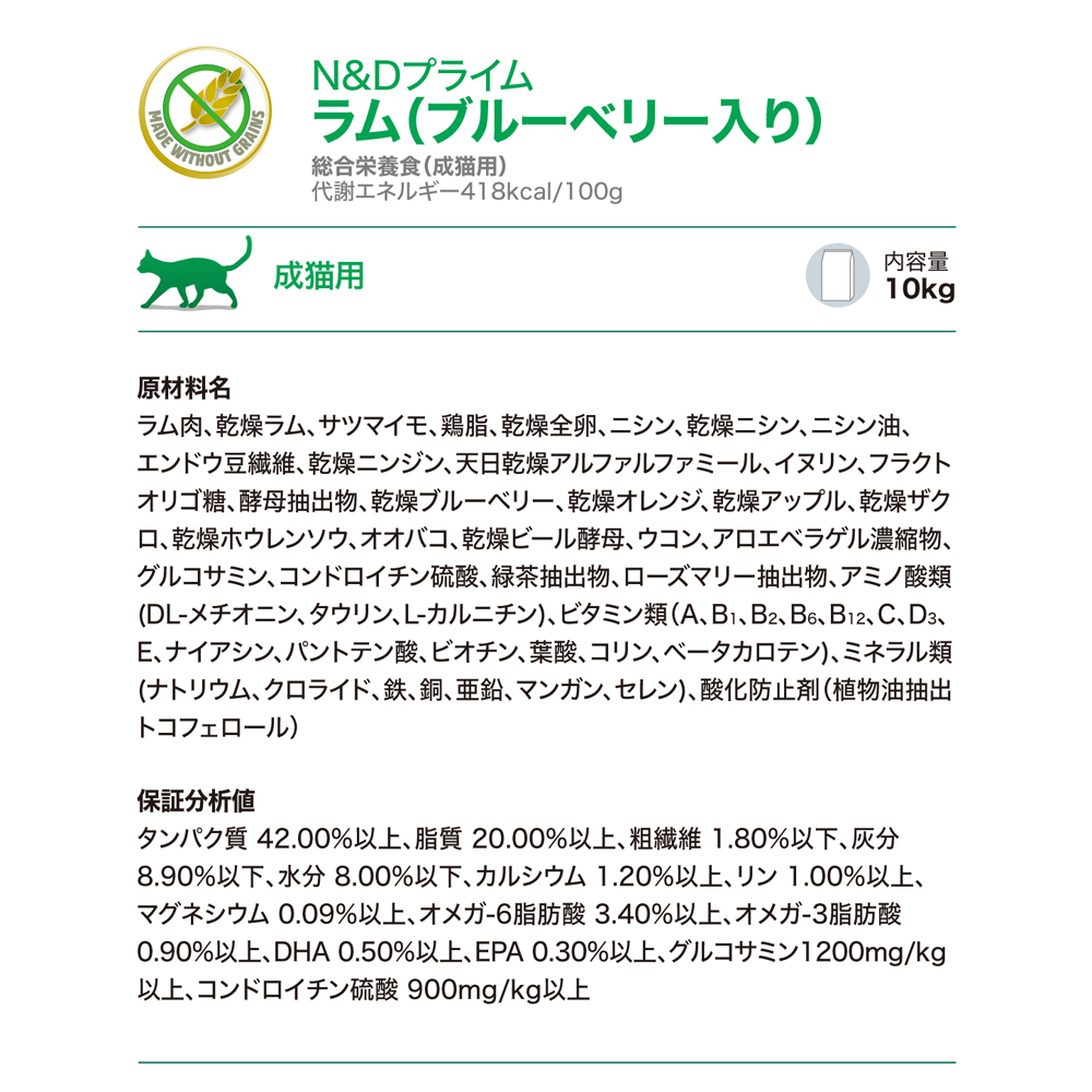 ファルミナ N&D プライム ラム ブルーベリー入り 成猫用 10kg