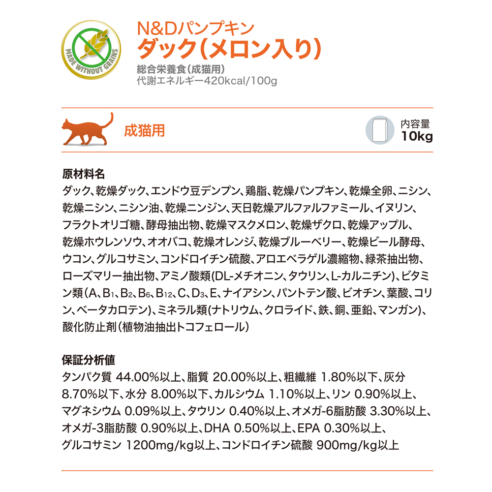 ファルミナ N&D パンプキン ダック メロン入り 成猫用 10kg